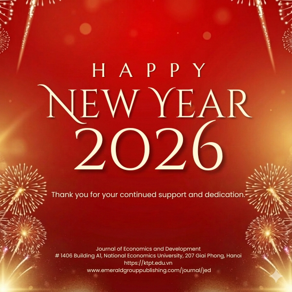 Nhân dịp năm mới 2026, Ban Biên tập Tạp chí Kinh tế và Phát triển xin trân trọng gửi tới toàn thể cộng đồng học thuật lời chúc mừng nồng nhiệt và lời cảm ơn chân thành vì sự tin tưởng, đồng hành và những đóng góp quý báu của quý vị trong suốt thời gian qua.
